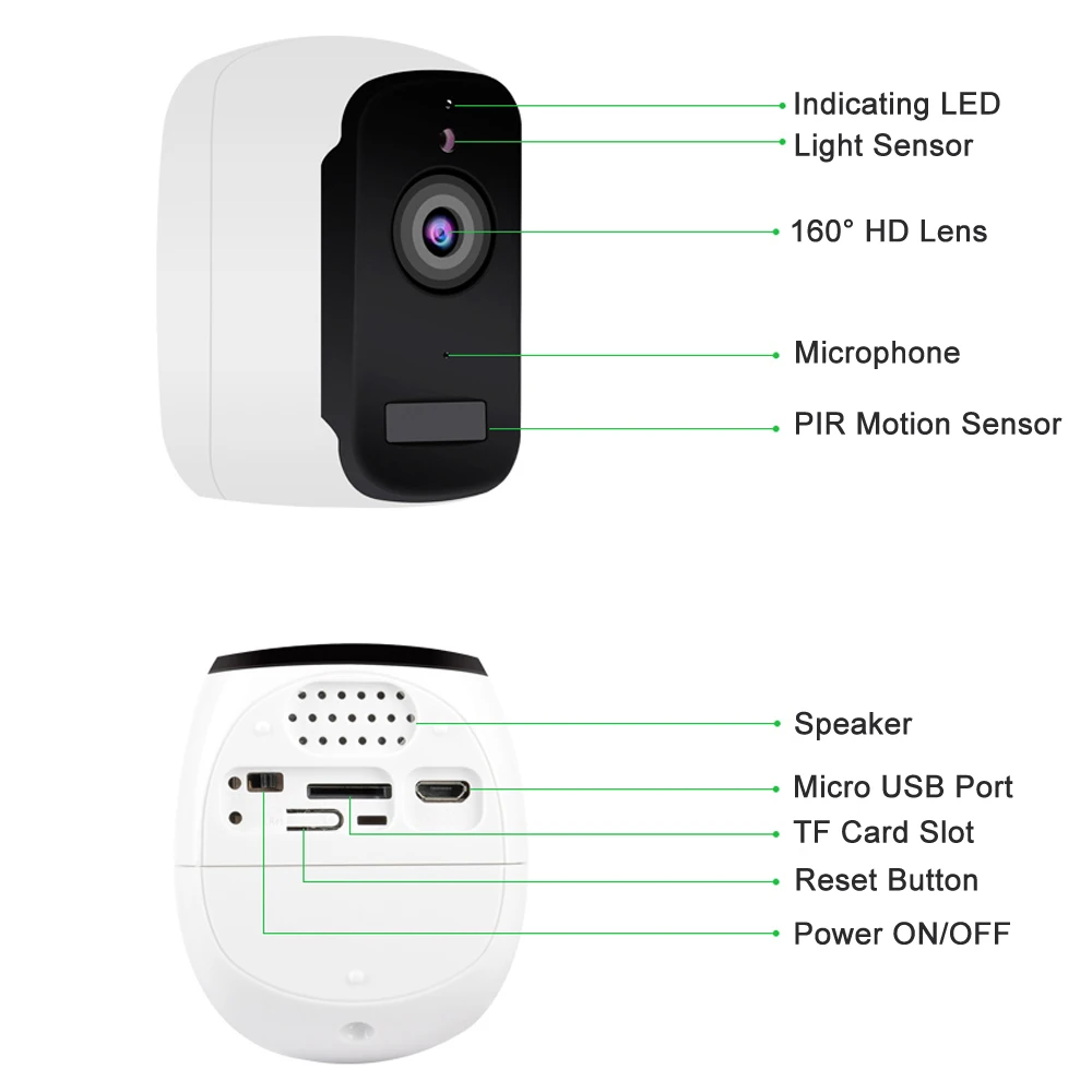 Battery Powered Camera WiFi IP Camera Home Security System Night Vision Indoor/Outdoor Wireless IP
