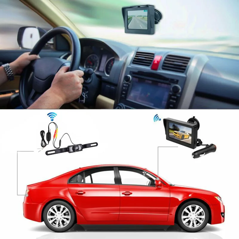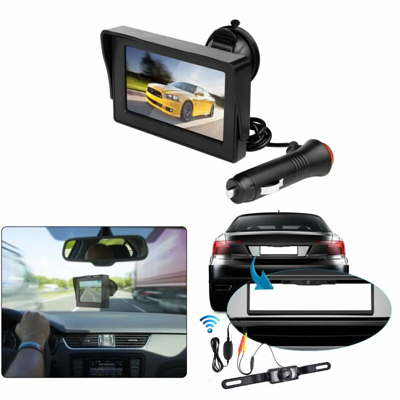 Wireless Backup LCD Monitor License Plate Night Vision Rear View Camera Kit Waterproof Car Surveill