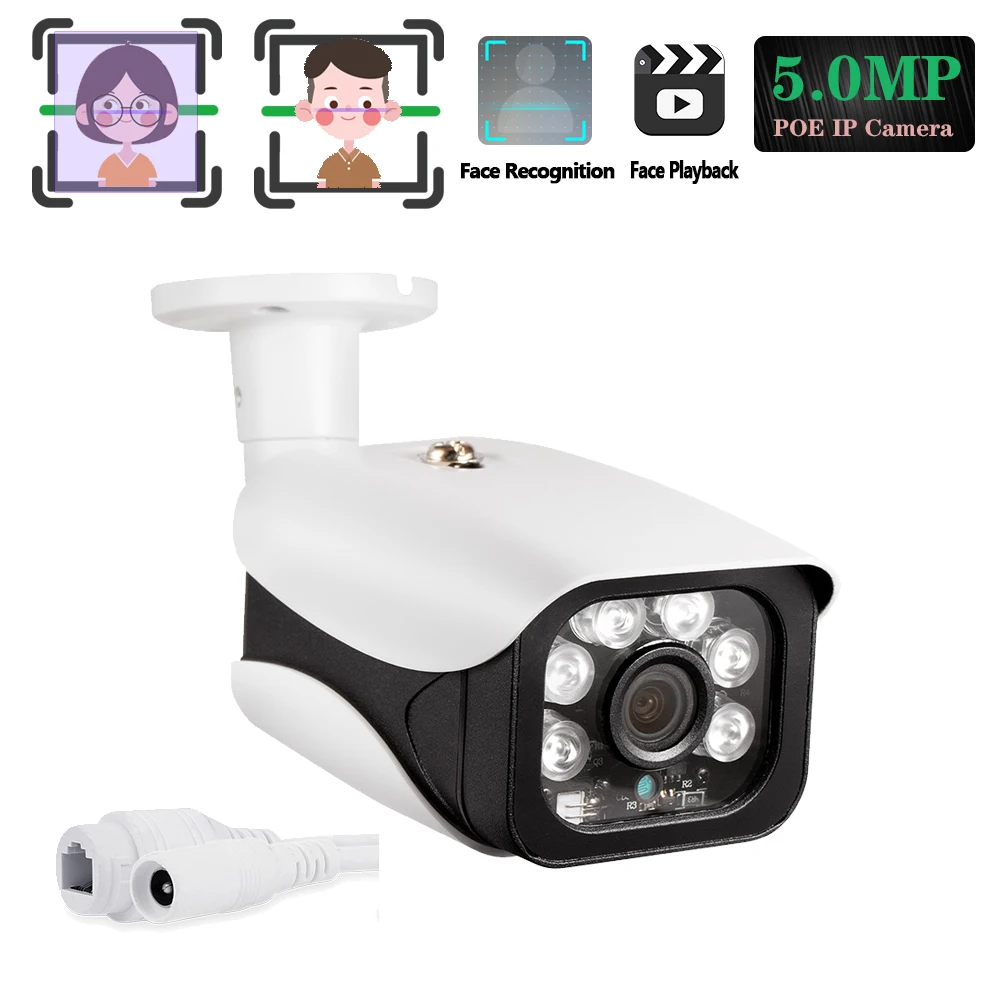 HIGH QUALITY H.265 5.0MP Bullet POE48V&DC12V IP CCTV Camera ONVIF 2.0 for POE Face record NVR System RJ45 Waterp